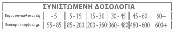 ΣΥΝΘΕΣΗ: αφυδατωμένο κρέας από αρνί, πάπια και τόνο 27%, ρύζι27%, βρώμη, φυτικά έλαια ψυχρής έκθλιψης, λίπος κοτόπουλου, ιχθυέλαιο, λιναρόσπορος 4%, φιδές τεύτλων, πατάτα, συκώτι διασπαμένο με υδρόλυση, μαγιά μπύρας,αποξηραμένο μήλο, ινουλίνη (εκχύλισμακιχωρίου),ΜΟS (εκχύλισμα μαγιάς)και λεκιθίνη.